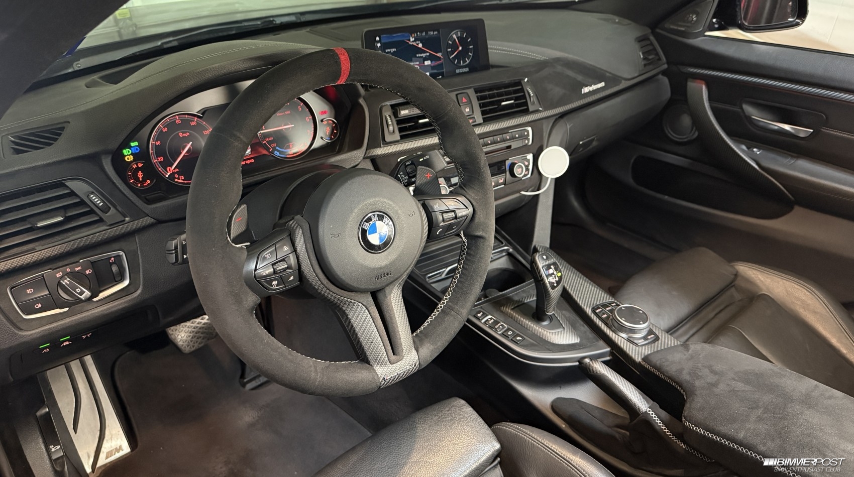 M Performance: Carbon Fiber/Alcantara Gear Trim, Hand Brake Handle, Interior Trim Kit, Carbon Fiber Shift Knob, G-Series Carbon Paddles, and Carbon/Alcantara armrest. BMW Euro sun visors and Euro Headlight switch. Alcantara Steering Wheel Cover.