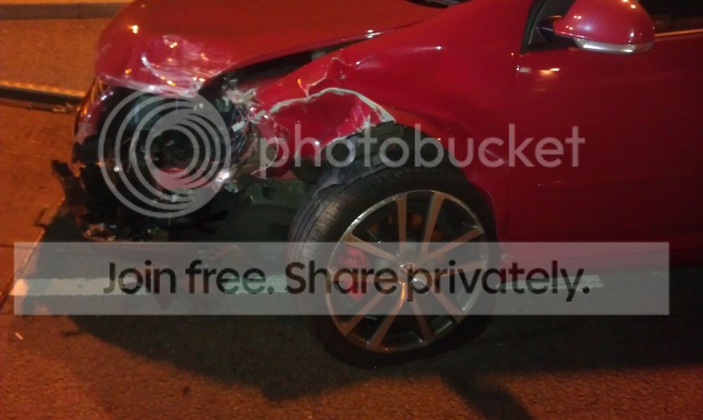 ![]() the rear drivers tyre exploded on impact with the curb ![]() front passanger got pushed back and snapped the engine mounts and broke loads of other stuff ![]() ![]() airbags HURT! ![]() the dual main road was closed off ![]() ![]() so all in all i had : the only fire engine on call 2 ambulances 2 motorway t5s 2 panda cars 1 dog van my car took his rear axle off and he still tried driving off. he got about 500 yards and dumped it and legged it . the insurance decided that it would be written off as there was £11,500 worth of damage and was past repair some people are just plain stupid ! |