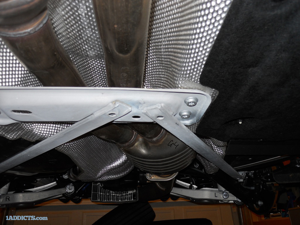 Do you have active steering, or is this just a different reservoir for the 1m? Looks to be the same as the one on the 135i with active steering. Also, anyone else notice that brace underneath the car (right by the resonator at the rear of the mid-pipe). I don't remember seeing that on my 1er; is this just for the 1M, or am I crazy? I guess I'll have to crawl under and verify. Anyways, nice looking undercarriage! Tim