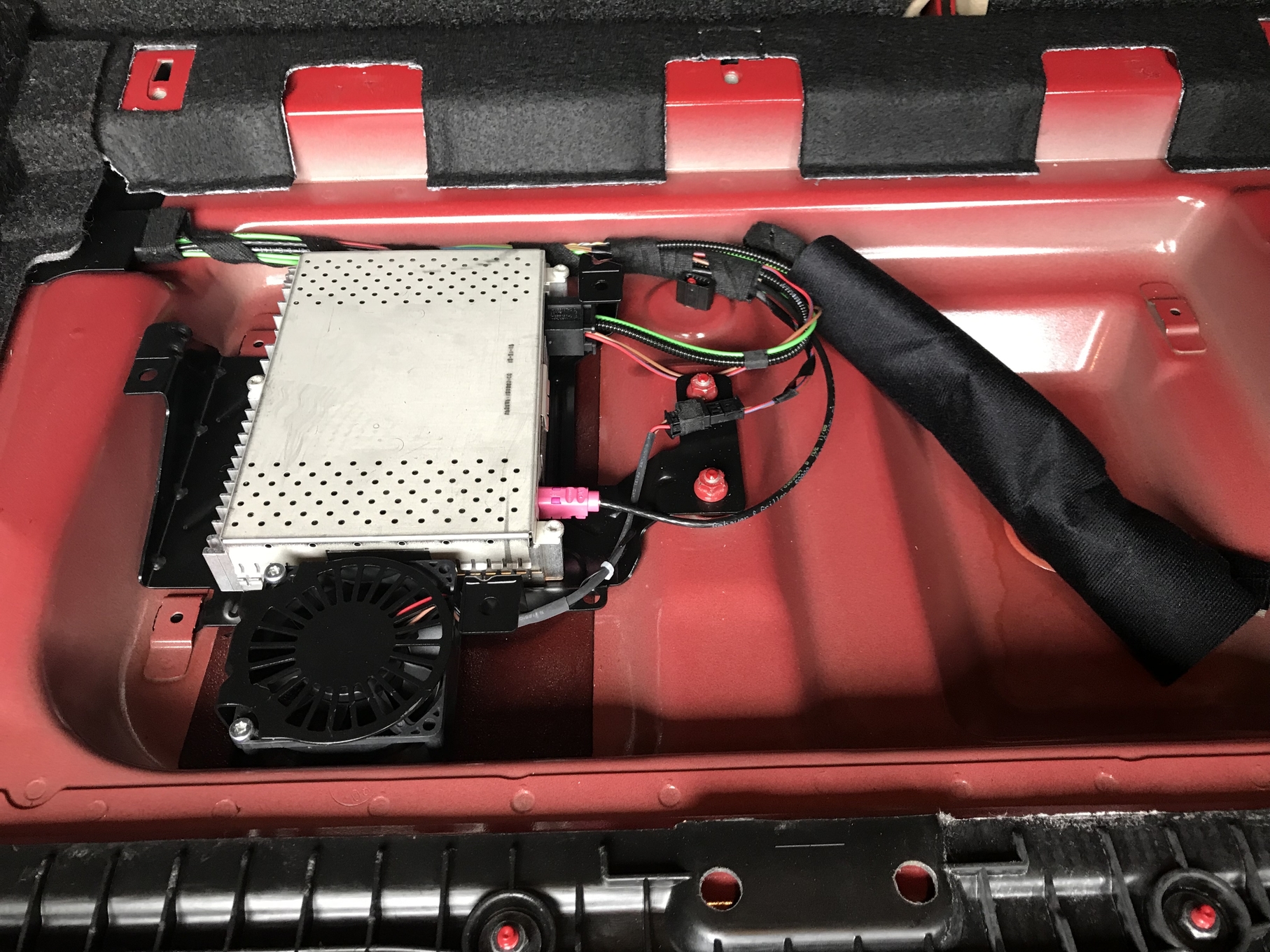 The red tipped cable is for the roof antennae. There were people who adapted it for use with Sirius.