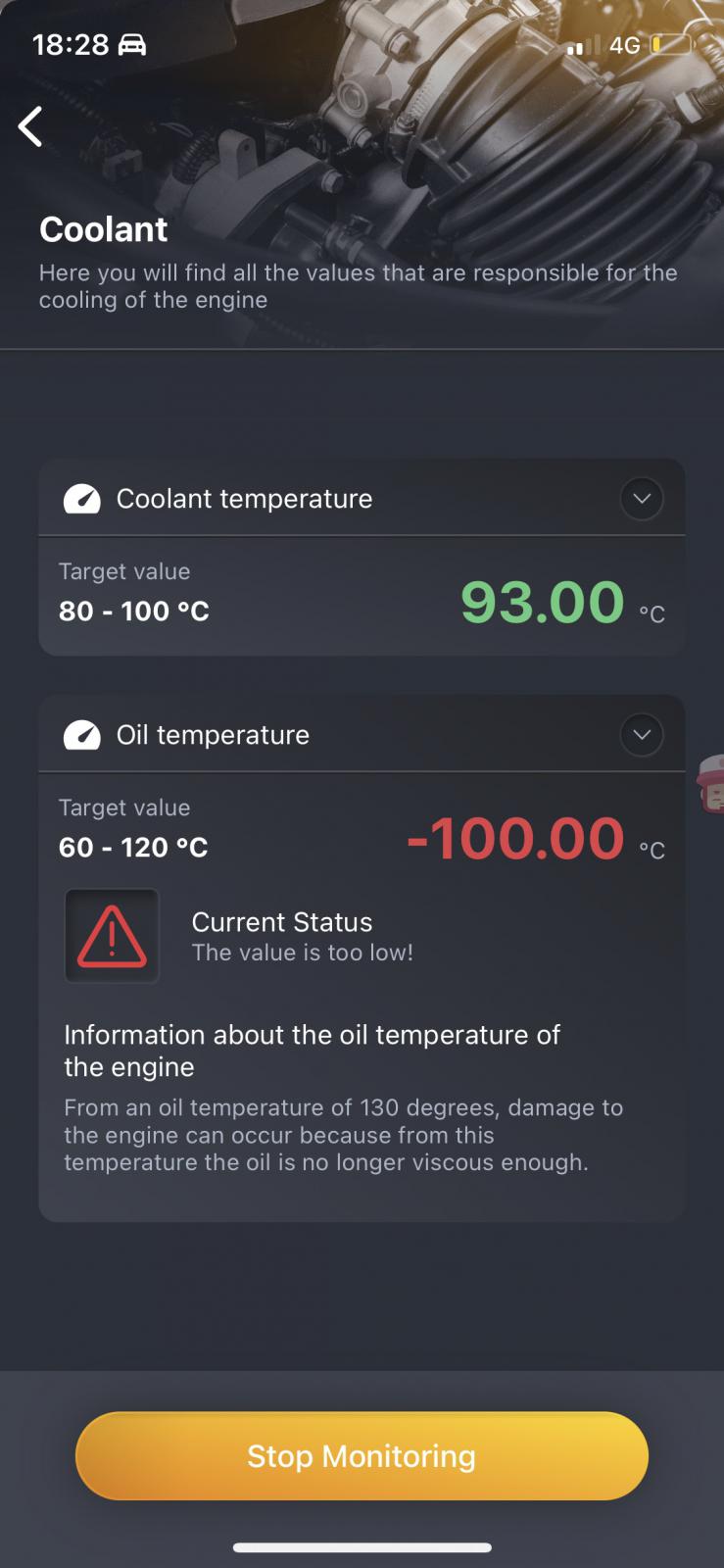 ![]() I’ve done some mechanical upgrades (just replacing things that with age can eventually break) and I’ve recently bought a Carly odb controller. Just realized this strange situation on the oil temperature. Does the 118D has an oil temperature sensor? Because going manual on the dashboard through the hidden menus I can only check car temperature by coolant. Not really oil temperature. The -100 value on Carly it sees to me that the sensor is not present. Can somebody tell me about this? Thank you! |