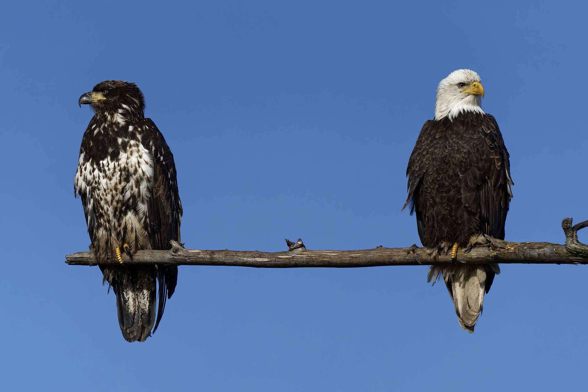 I walked outside the house today and saw these two sitting in a nearby tree pretending not to see each other.