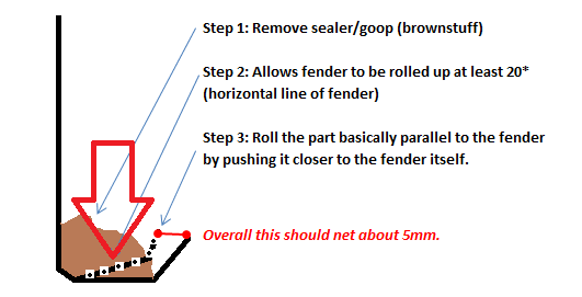 I was able to successfully clear the sealant out of the fender via steel wire brush thing and a dremel. However when I went to go roll, I came into a pretty serious issue.